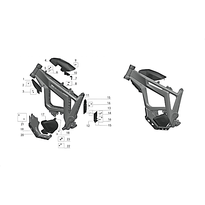 Grâce à nos vues éclatées complètes et détaillées, identifiez facilement chaque pièce de votre moto : moteur, batterie, contrôleur, transmission, suspensions, ou habillage.
