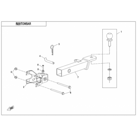 SUPPORT FIXATION ATTELAGE SUR CHASSIS Ref 9AWV-401000-2B00 |