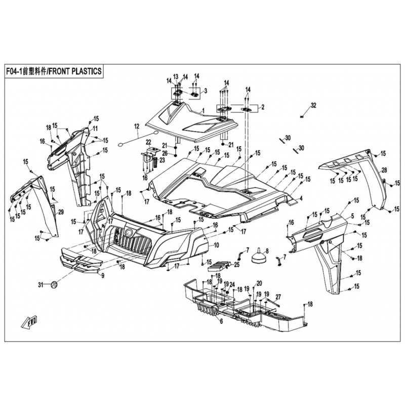 CARROSSERIE CAPOT AVANT TITANIUM GREY Ref 7030-040151-0B50 |