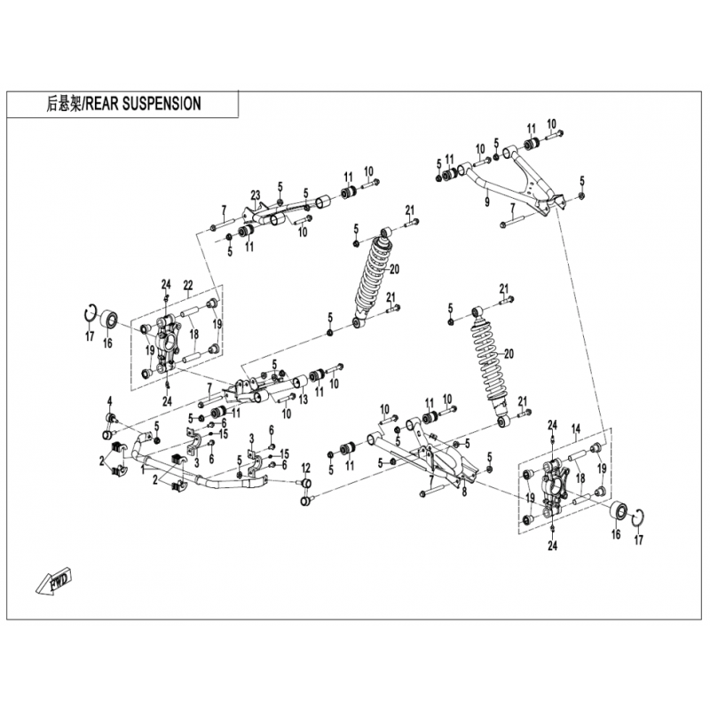 <p>Vue éclatée 15 pour CFMOTO QUADS CFORCE 1000 T3 OVERLAND AVEC DIFF ARRIERE – retrouvez la liste complète des composants d'origine et identifiez rapidement la pièce compatible.</p>