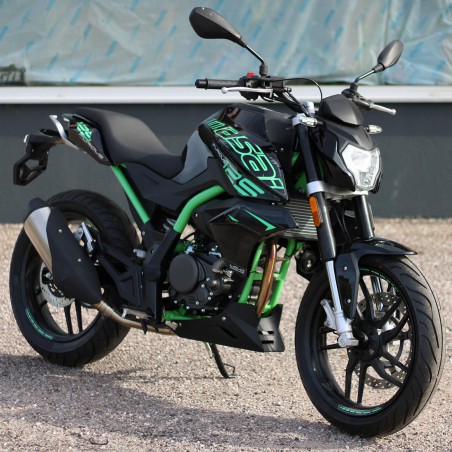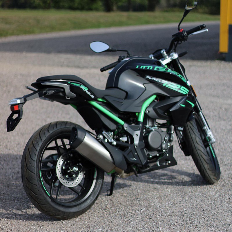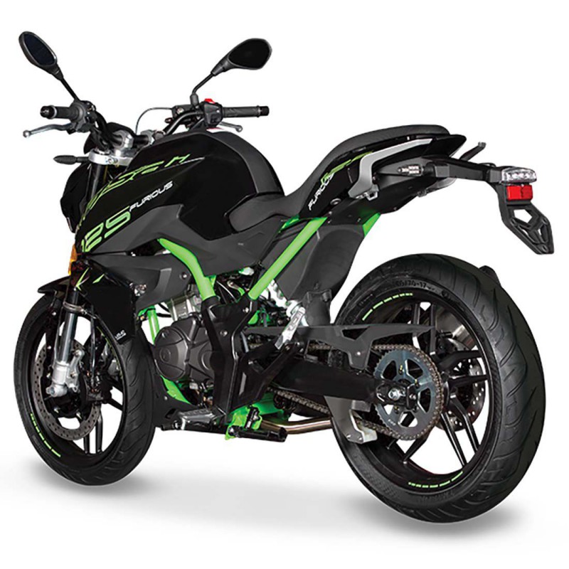 La Furious 125 séduit dès le premier regard, grâce à des formes musclées et sportives, alimentée par un nouveau moteur double arbre à came, 4 soupapes, refroidissement liquide et qui développe 15 ch à 10000 trs, soit le maximum autorisé par le segment (permis A1/B). Ce qui promet de belles accélérations.