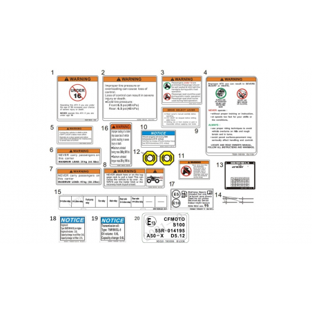 L'AUTOCOLLANT WARNING est un élément essentiel pour assurer la sécurité et le bon fonctionnement de votre véhicule tout-terrain. Il joue un rôle crucial en informant le conducteur des spécificités techniques et des précautions à prendre lors de l'utilisation du quad. En effet, cet autocollant est conçu pour résister aux conditions extrêmes auxquelles votre véhicule peut être soumis, garantissant ainsi une visibilité optimale des avertissements.