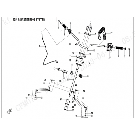 Ce composant mécanique relie le guidon aux roues avant, permettant un contrôle optimal de la direction. En cas d'usure ou de défaillance, vous pourriez ressentir des vibrations excessives, une direction floue ou des difficultés à