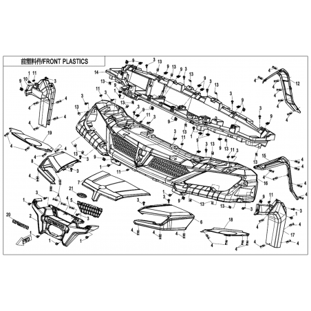 Le CARROSSERIE AVANT est un élément essentiel qui joue un rôle crucial dans la protection et l'intégrité de votre véhicule tout-terrain. Il assure non seulement l'esthétique de votre quad, mais il contribue également à la sécurité et à la performance en protégeant les composants internes des impacts et des intempéries.