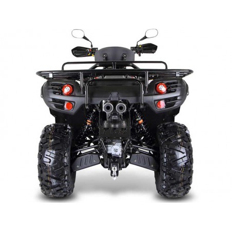 | Commande au guidon pour les modes 4x2, 4x2 et 4x4 avec blocage du pont avant Compteur digital multifonction Direction assistée tri mode réglable Jantes aluminium Protèges main Porte bagages avant et arrière, bumper avant Rotule d'attelage Dossier passager Marche pieds Passager Bouchon de réservoir à clefs 2 prises 12 volt 2 boîtes à gants avec verrouillage LED Day light Extensions d'ailes anti rayures Homologation T3, 2 places |
