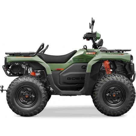 Ce quad agricole homologué T3b bénéficie d'une TVA récupérable et d'une garantie de 5 ans pièces dans le réseau GOES France. Treuil avant, boule d'attelage, prises USB/12V et freins à disque hydrauliques 4 roues : tout est inclus de série. Le quad qui travaille comme vous.
